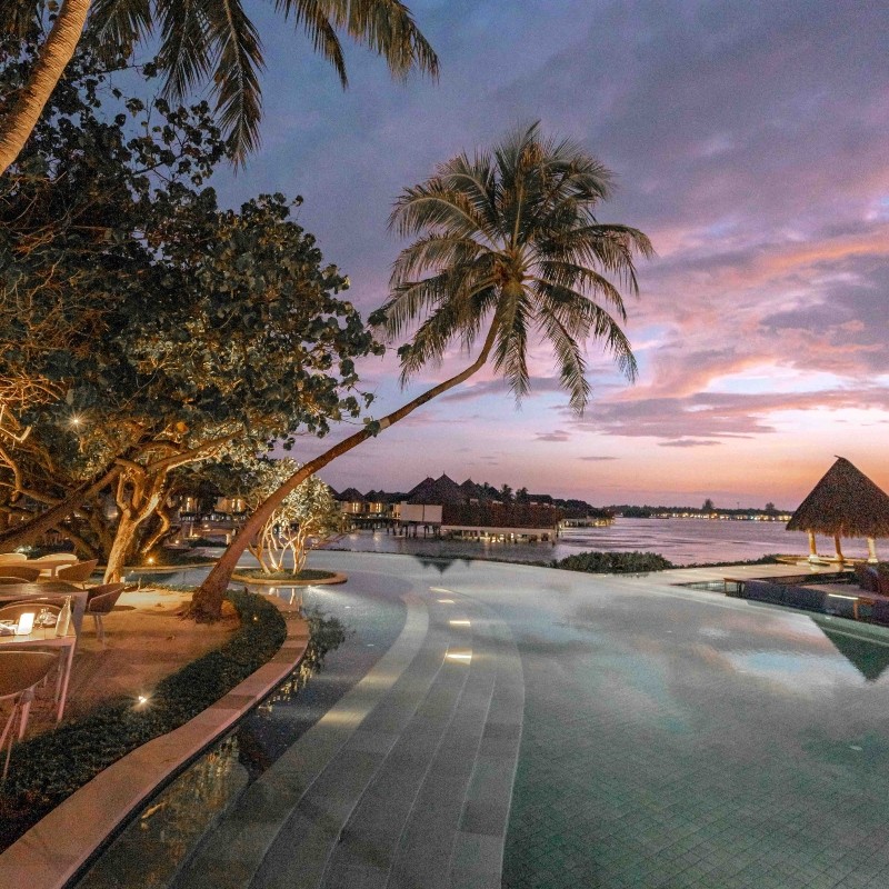 Transport yourself to a tropical paradise with the soothing sounds of waves gently lapping on the shore and the calm rustling of palm trees, creating a tranquil and serene atmosphere for a restful sleep.